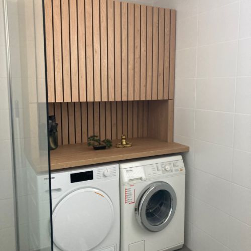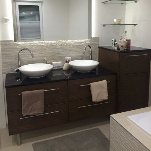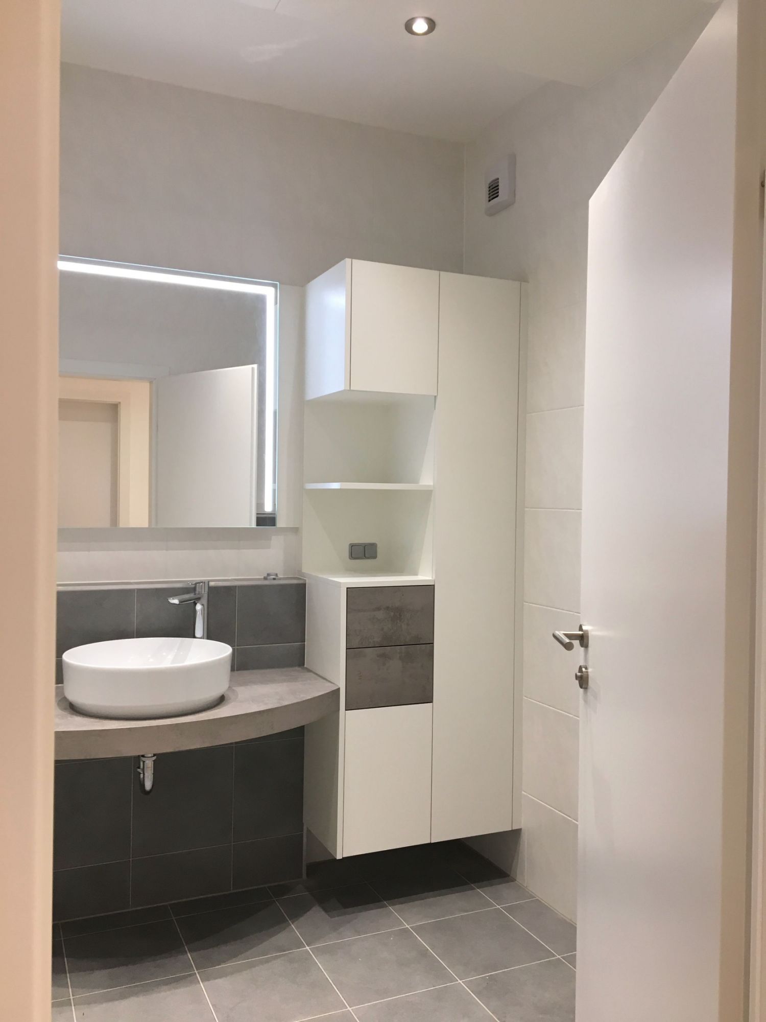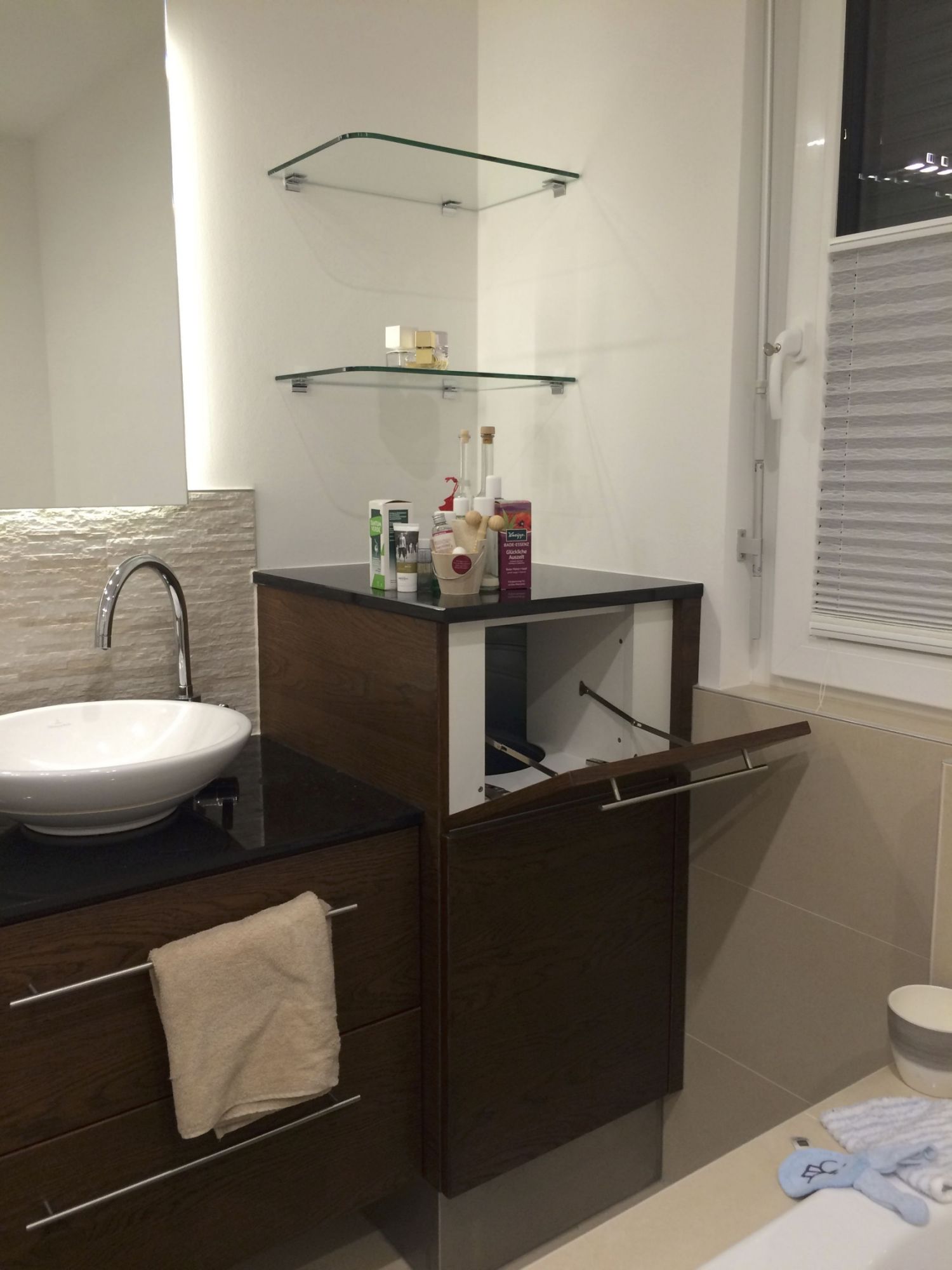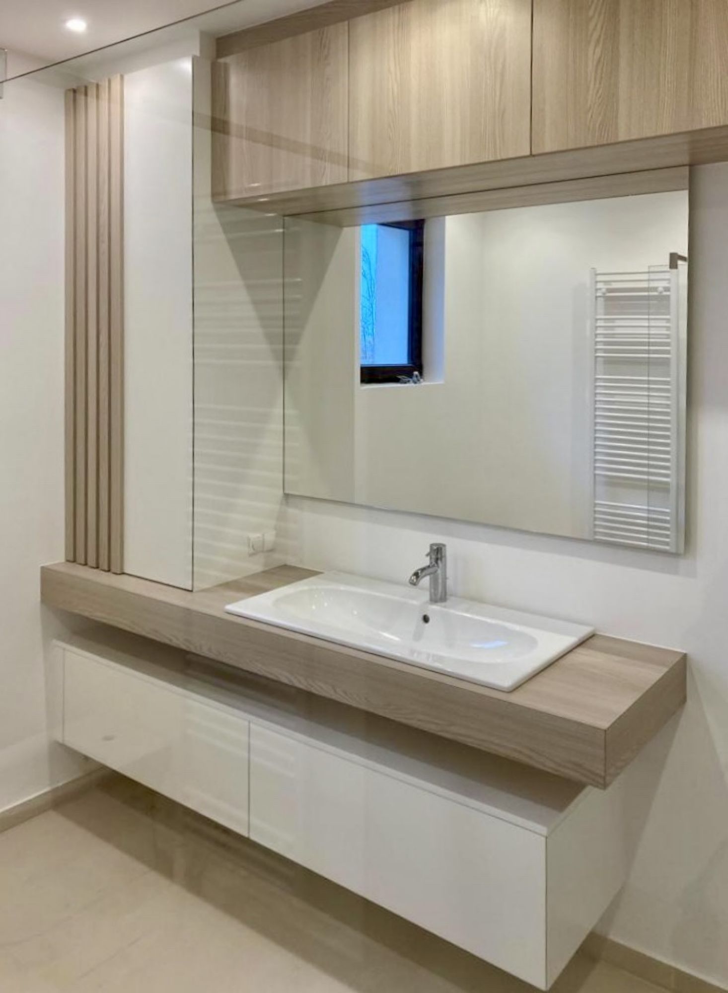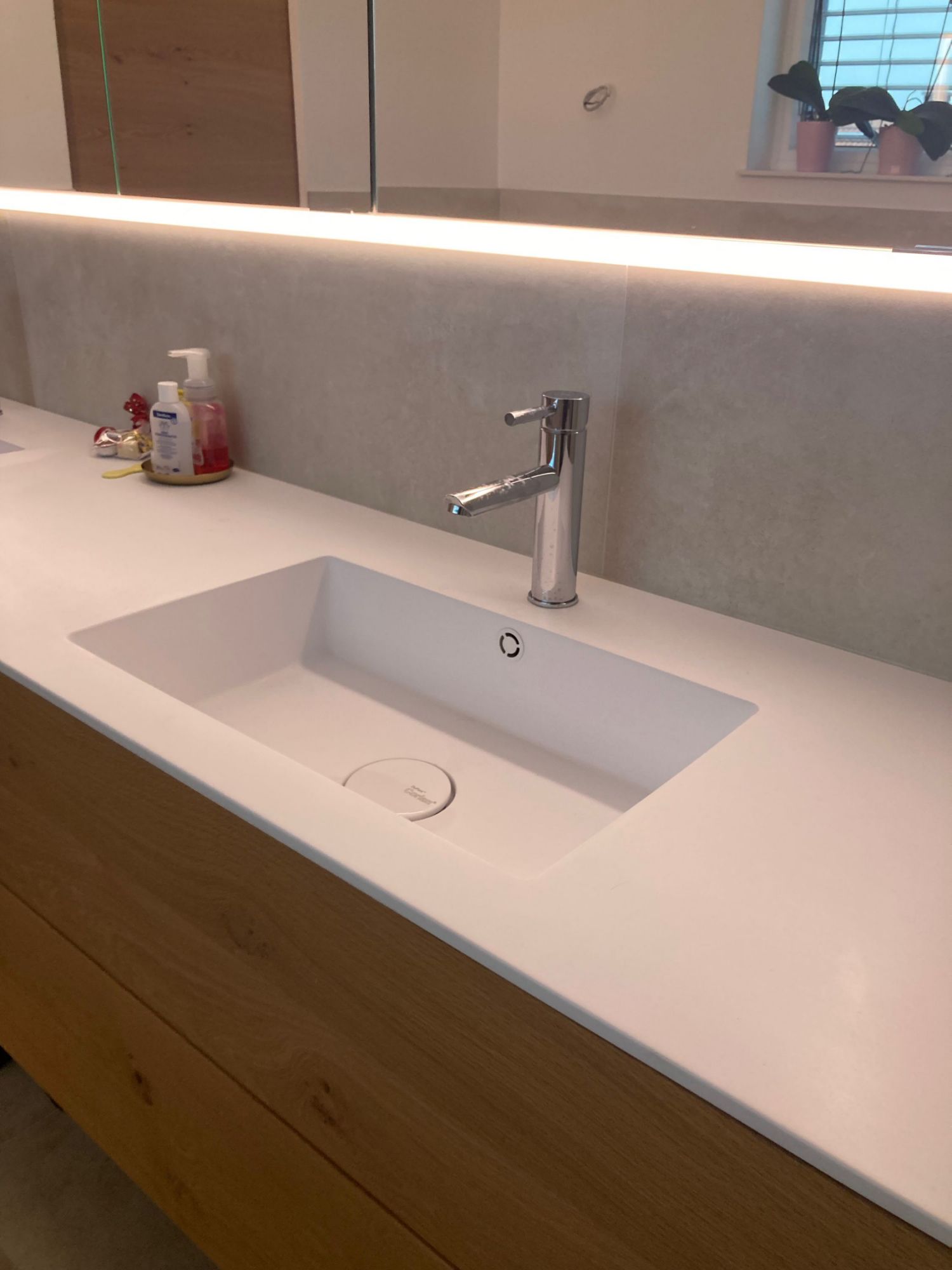Vom Waschtisch über Spiegelschränke bis hin zu Ablagen oder Verkleidungen – jedes Stück wird präzise geplant und an die räumlichen Gegebenheiten angepasst. Wir verwenden feuchtigkeitsbeständige, hochwertige Materialien, die sich ideal für den Einsatz im Nassbereich eignen und zugleich eine natürliche Eleganz ausstrahlen.