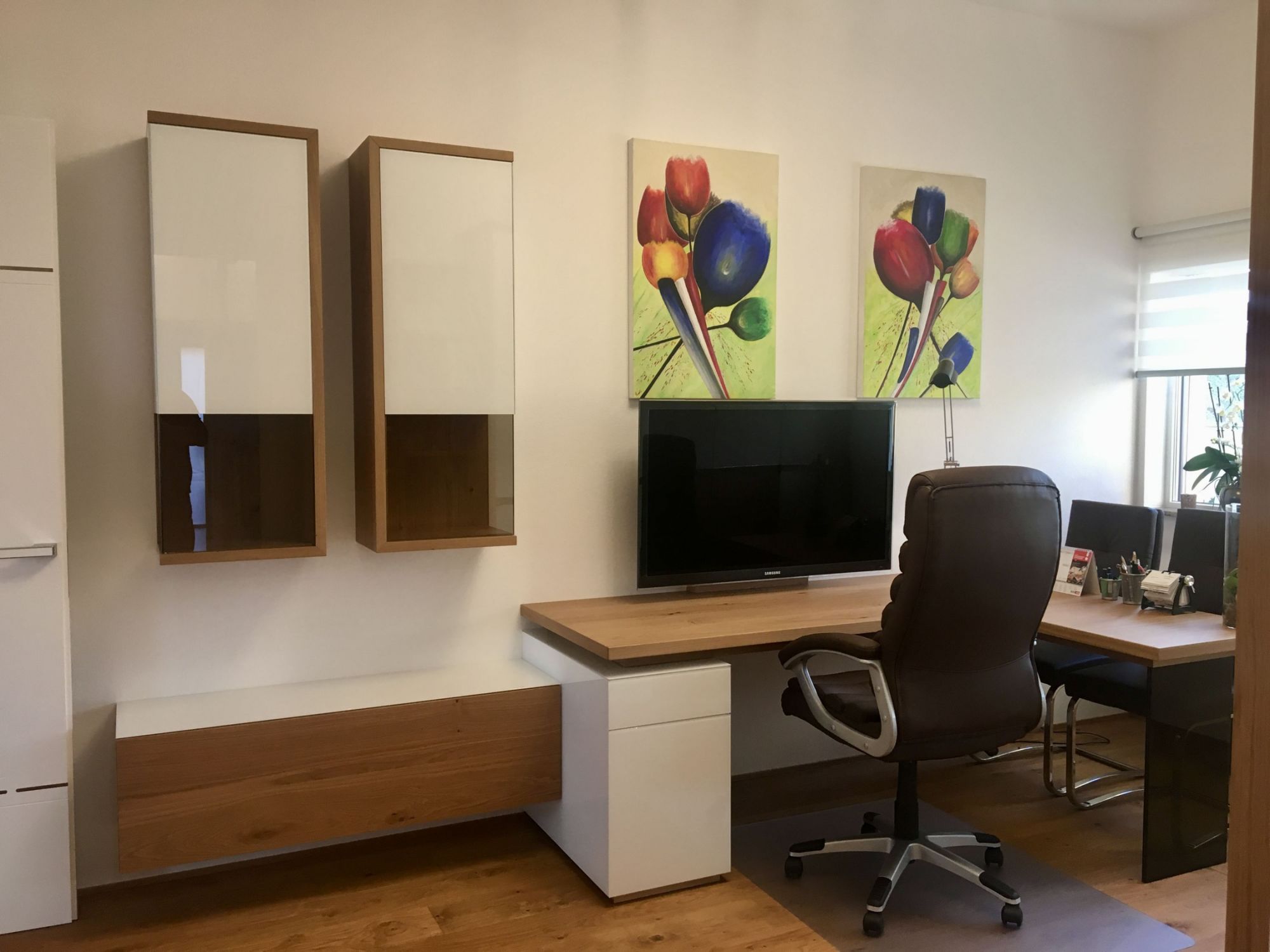 Ob ergonomischer Schreibtisch, maßgefertigte Regallösungen oder repräsentativer Besprechungstisch – jedes Stück wird präzise geplant und auf Ihre Arbeitsweise abgestimmt. Wir legen Wert auf hochwertige Materialien, langlebige Verarbeitung und ein harmonisches Raumkonzept, das Produktivität und Wohlbefinden gleichermaßen fördert.