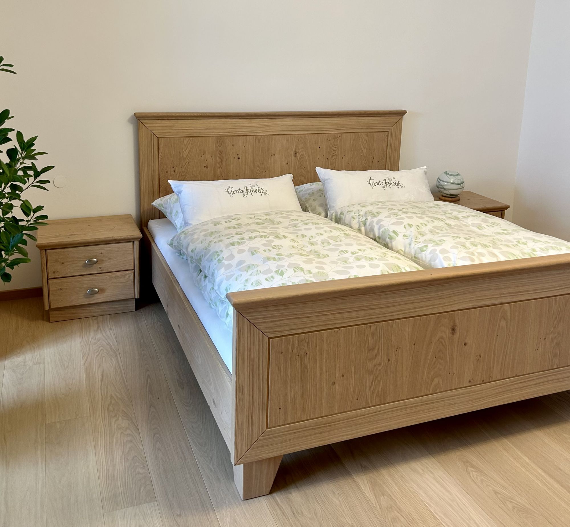 Ob stilvolles Bettgestell, großzügiger Kleiderschrank oder funktionelle Nachtkästchen – jedes Stück entsteht in handwerklicher Präzision und nach Ihren individuellen Wünschen. Wir kombinieren natürliche Materialien mit harmonischen Formen und schaffen so eine Atmosphäre, die Geborgenheit vermittelt.
