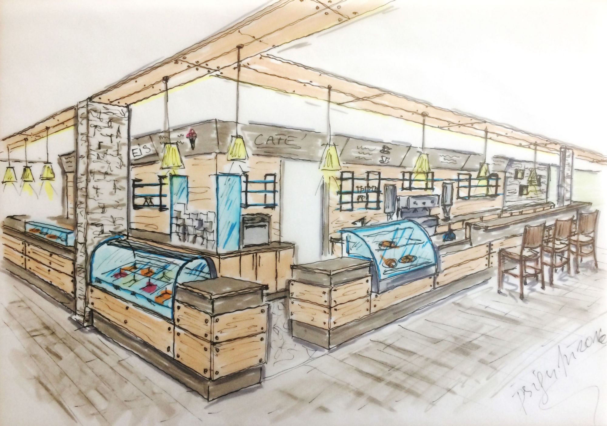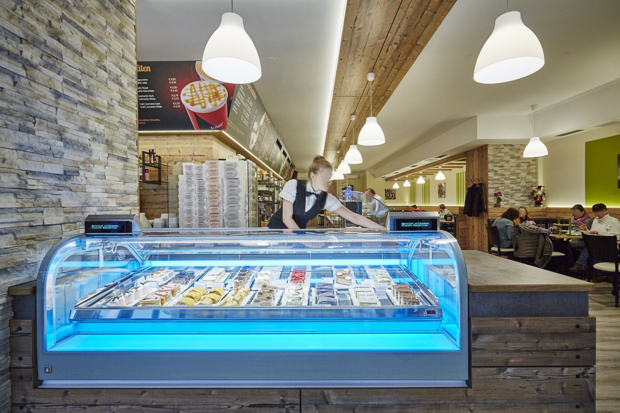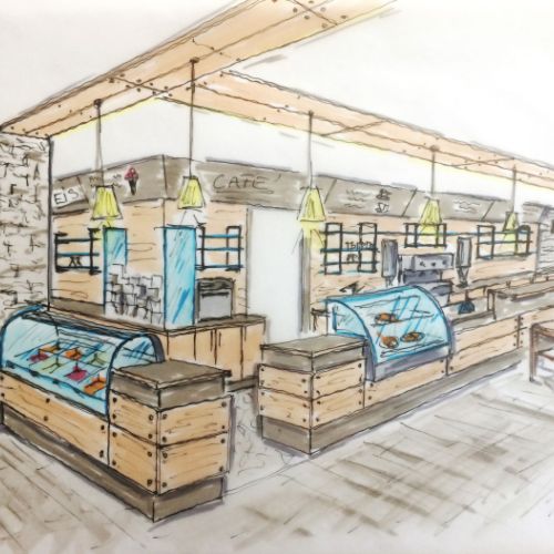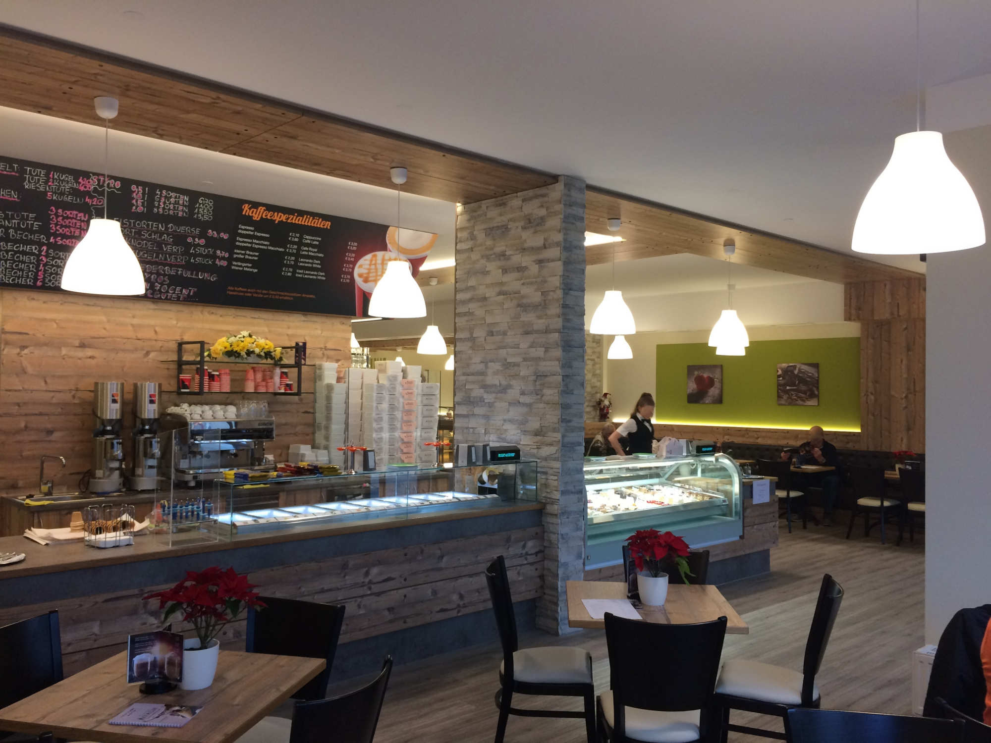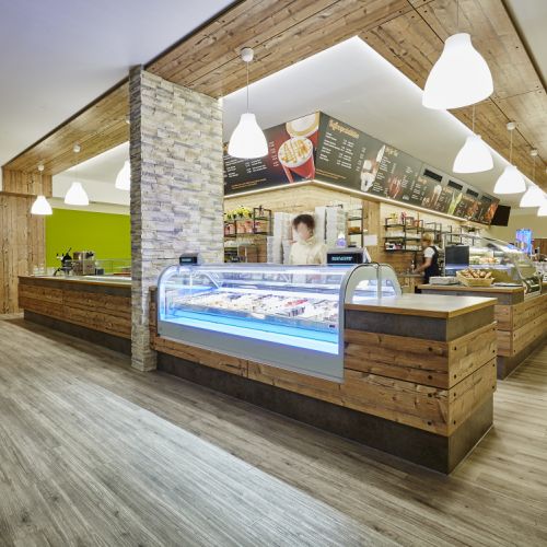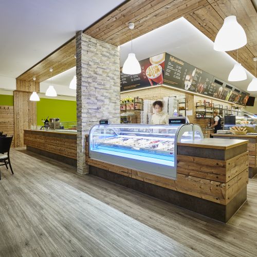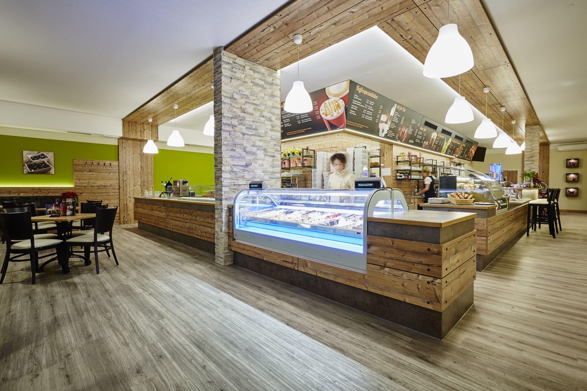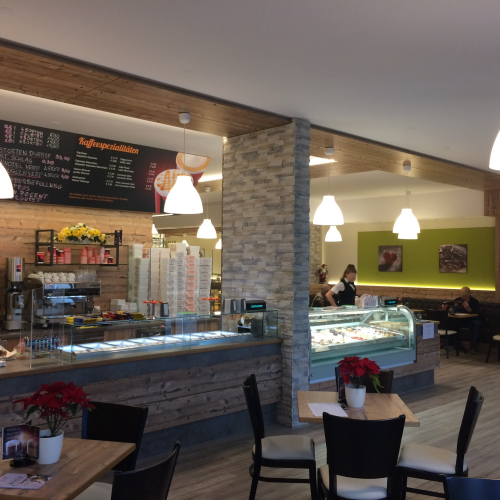 Aus einem ehemaligen leerstehenden Lokal wurde ein modernes Eiscafé geschaffen, das als beliebter Treffpunkt für Jung und Alt gilt. Der Innenausbau verbindet warme Materialien mit einer offenen, einladenden Raumgestaltung und schafft so ein Ambiente, das zum Verweilen einlädt.