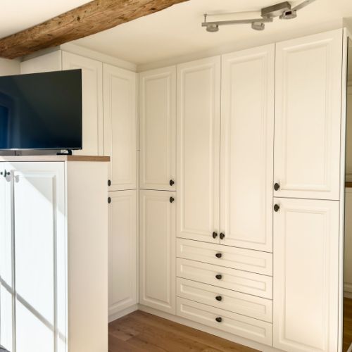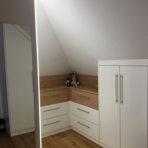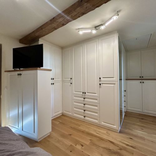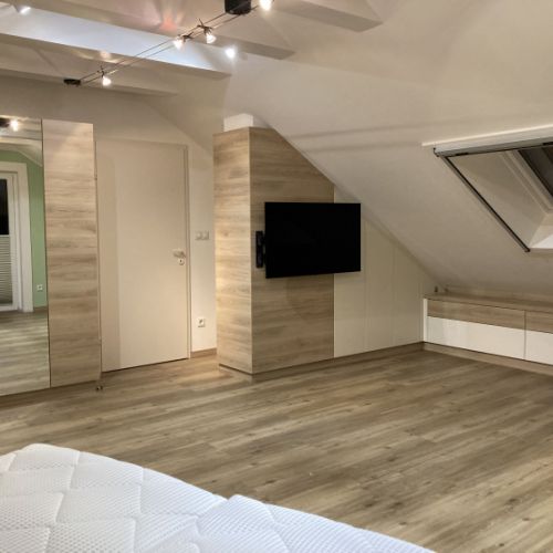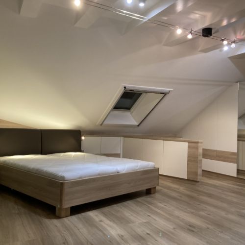 Das Schlafzimmer ist der persönlichste Raum des Hauses – ein Ort der Ruhe und Erholung. Mit maßgefertigten Möbeln aus unserer Tischlerei gestalten wir Ihr Schlafzimmer zu einer Oase der Entspannung.