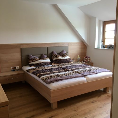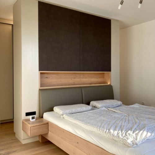 Ob stilvolles Bettgestell, großzügiger Kleiderschrank oder funktionelle Nachtkästchen – jedes Stück entsteht in handwerklicher Präzision und nach Ihren individuellen Wünschen. Wir kombinieren natürliche Materialien mit harmonischen Formen und schaffen so eine Atmosphäre, die Geborgenheit vermittelt.