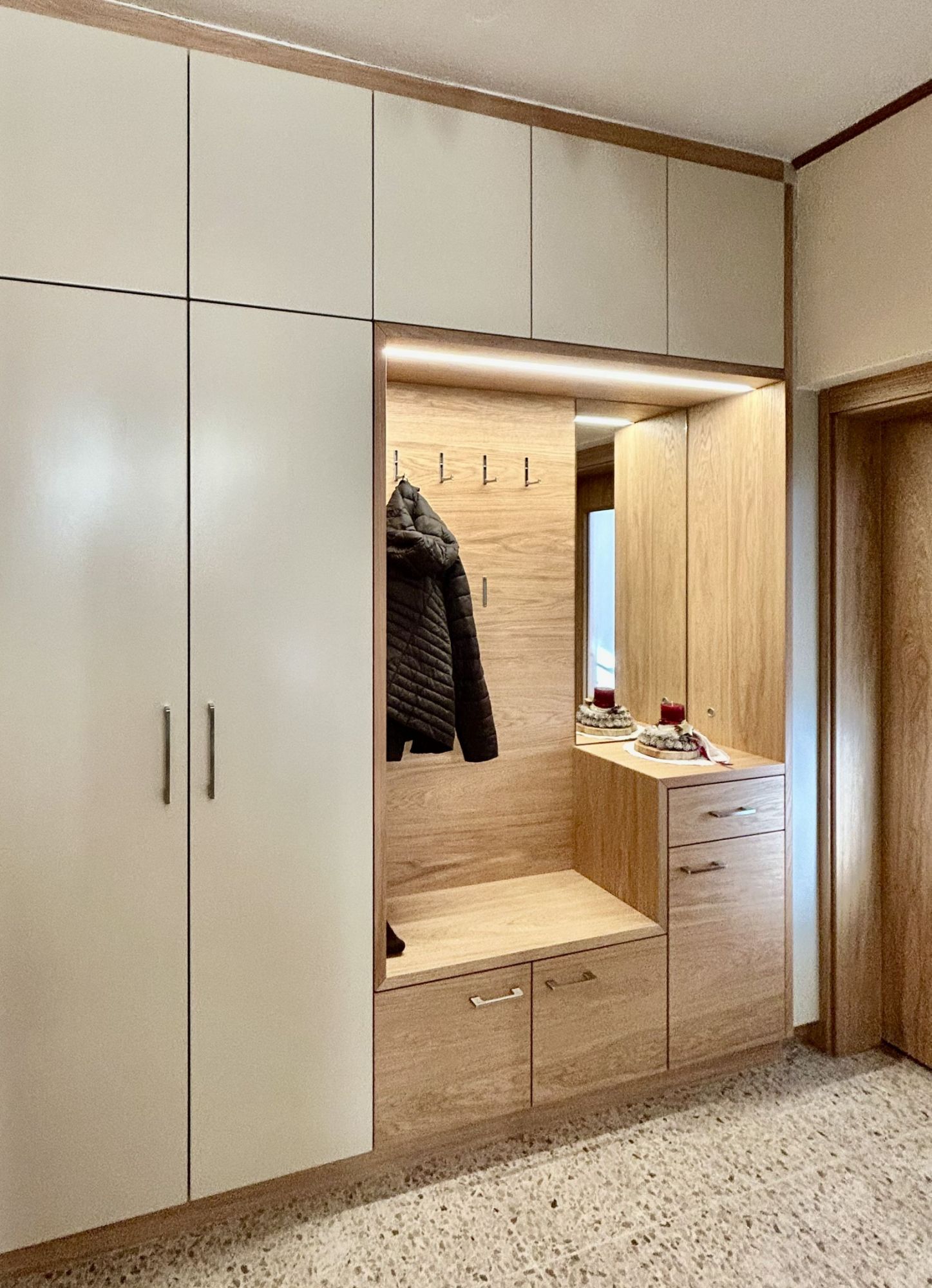 Jedes Möbelstück wird präzise geplant, um den vorhandenen Raum bestmöglich zu nutzen. Ob modern, klassisch oder puristisch – wir gestalten Ihren Vorraum so, dass er einladend wirkt und zugleich Ordnung schafft.